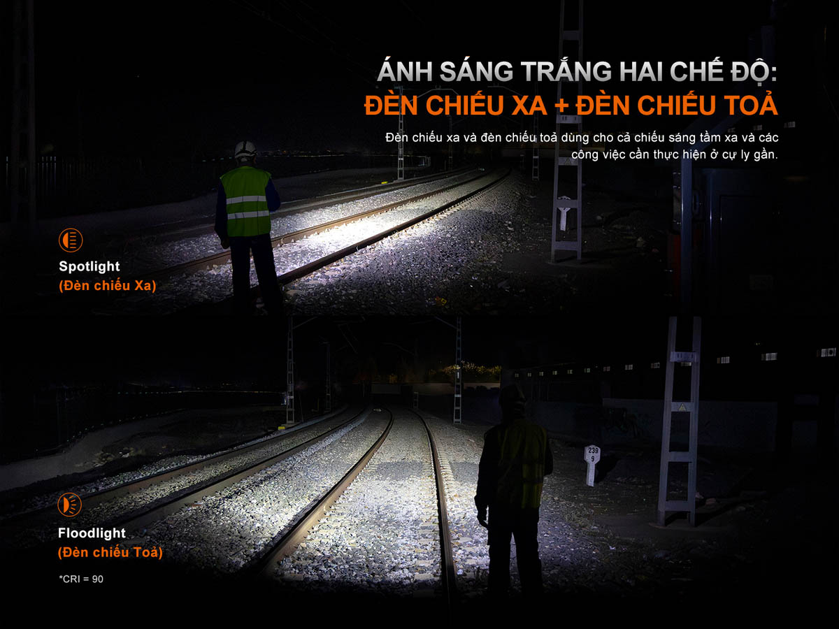 - Floodlight (chiếu tỏa) với CRI 90, tái tạo màu sắc chân thực, cực kỳ lý tưởng cho sửa chữa, làm việc gần, đọc bản vẽ hay kiểm tra chi tiết – nơi ánh sáng chính xác là yếu tố quan trọng.