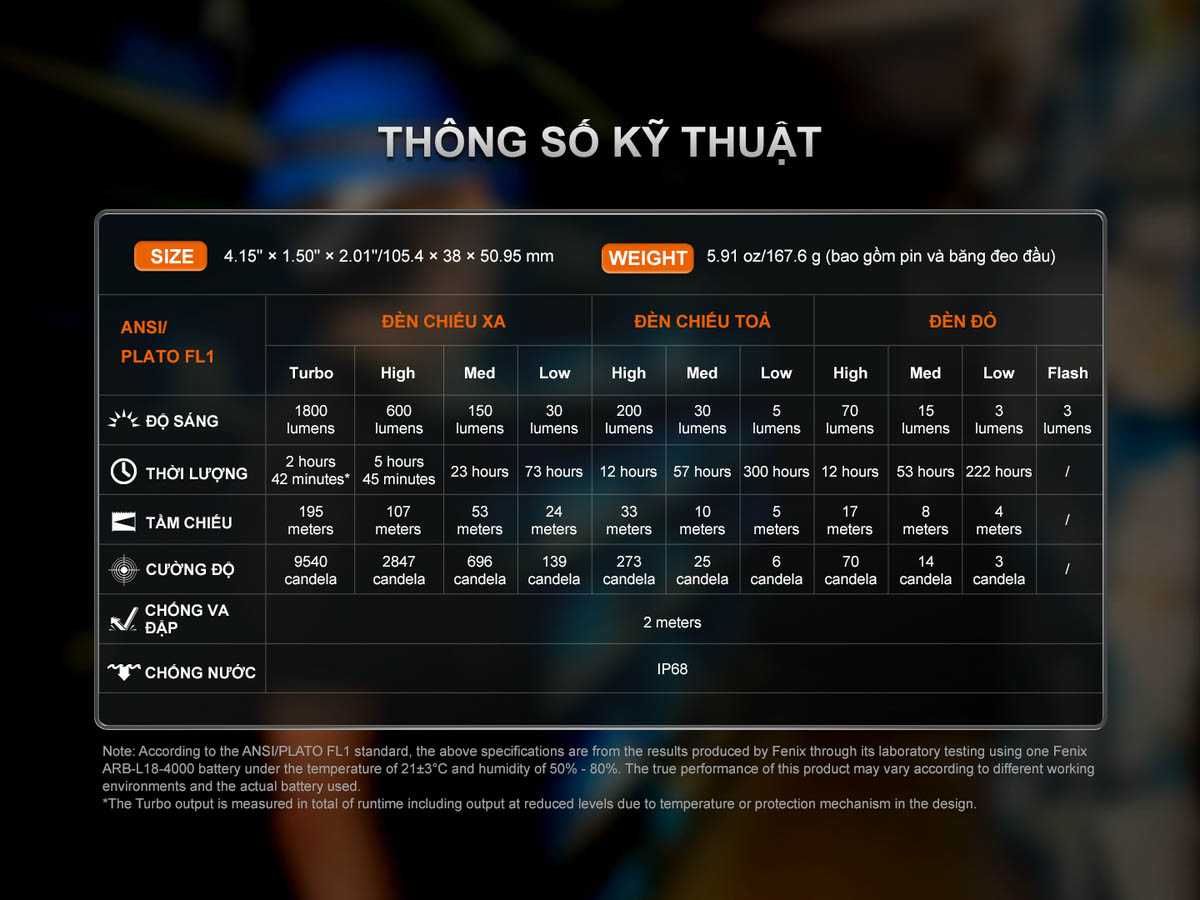 - Fenix HM61R V3.0 đạt chuẩn chống nước, chống bụi IP68, sẵn sàng hoạt động trong nhiều điều kiện môi trường khắc nghiệt.