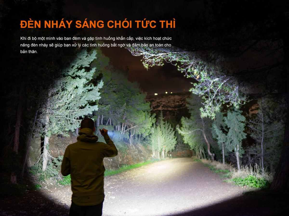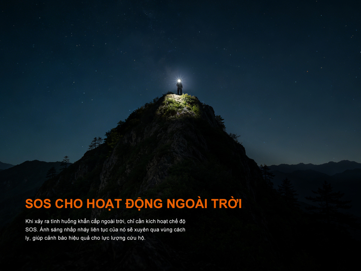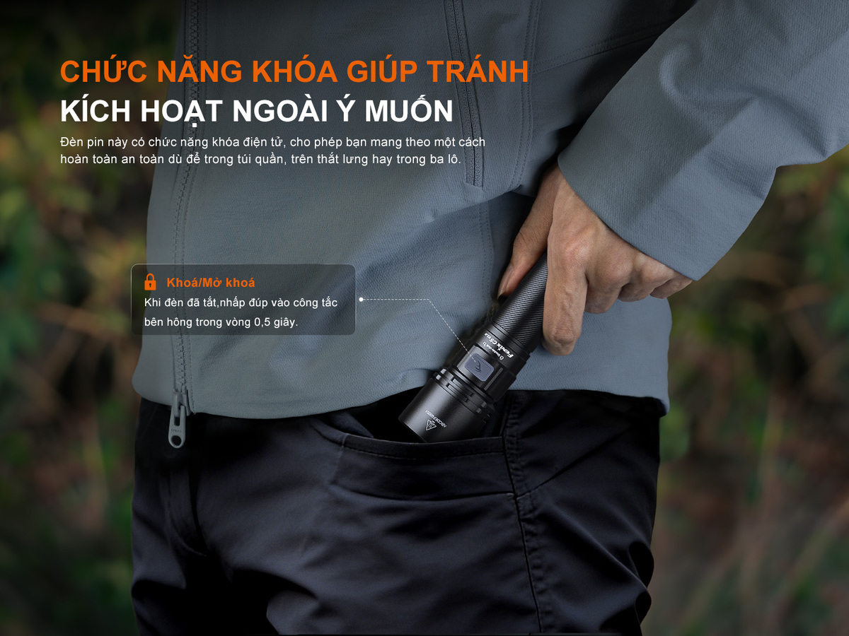 - Ngoài ra, chế độ khóa an toàn (nhấn nhanh 2 lần) giúp tránh bật nhầm khi cất đèn trong túi quần hay balo, hạn chế sinh nhiệt không mong muốn – một chi tiết nhỏ nhưng rất thiết thực trong sử dụng thực tế.