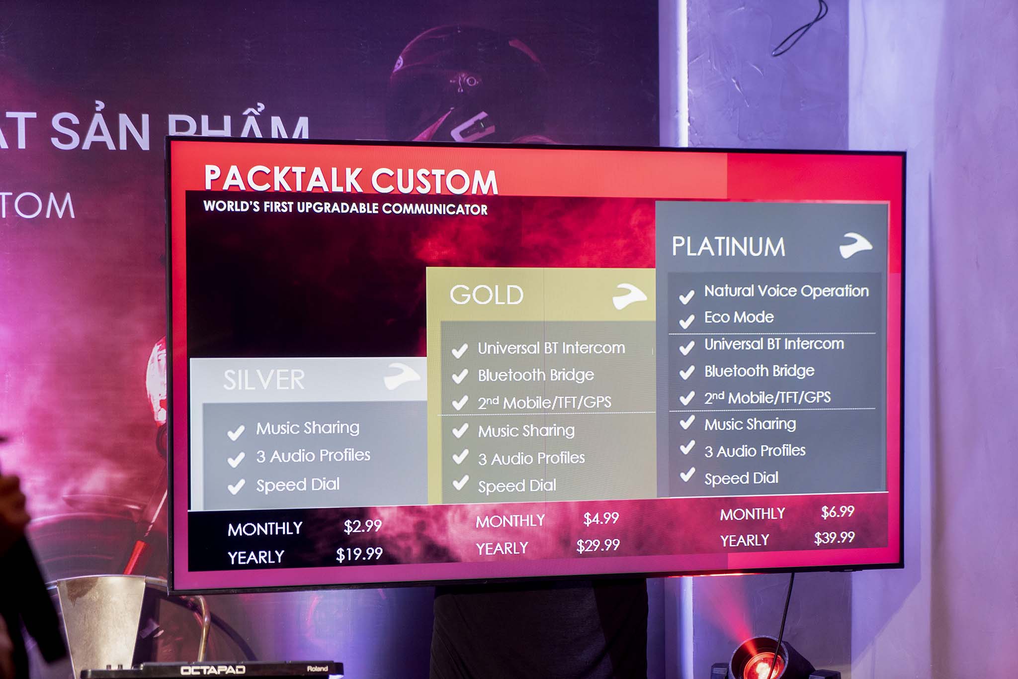 Anh Minh - Giám đốc HT Camera, nhà phân phối chính thức Cardo tại Việt Nam chia sẻ thêm về việc PACKTALK CUSTOM là dòng sản phẩm đầu tiên mà Cardo áp dụng việc mở rộng các tính năng cao cấp dưới dạng mua gói trả phí, điều này giúp tiết kiệm chi phí hơn cho người dùng, cũng như kết nối với hệ thống thanh toán của Apple Pay hay Google Pay để cung cấp cho người dùng khả năng nâng cấp hay giảm gói tính năng một cách tiện lợi nhất. Mặt khác, phiên bản PACKTALK CUSTOM sẽ được ưu tiên cập nhật các tính năng mới trong tương lai nếu có, trong khi phiên bản EDGE sẽ không có tính năng này và buộc phải mua phiên bản mới hơn.
