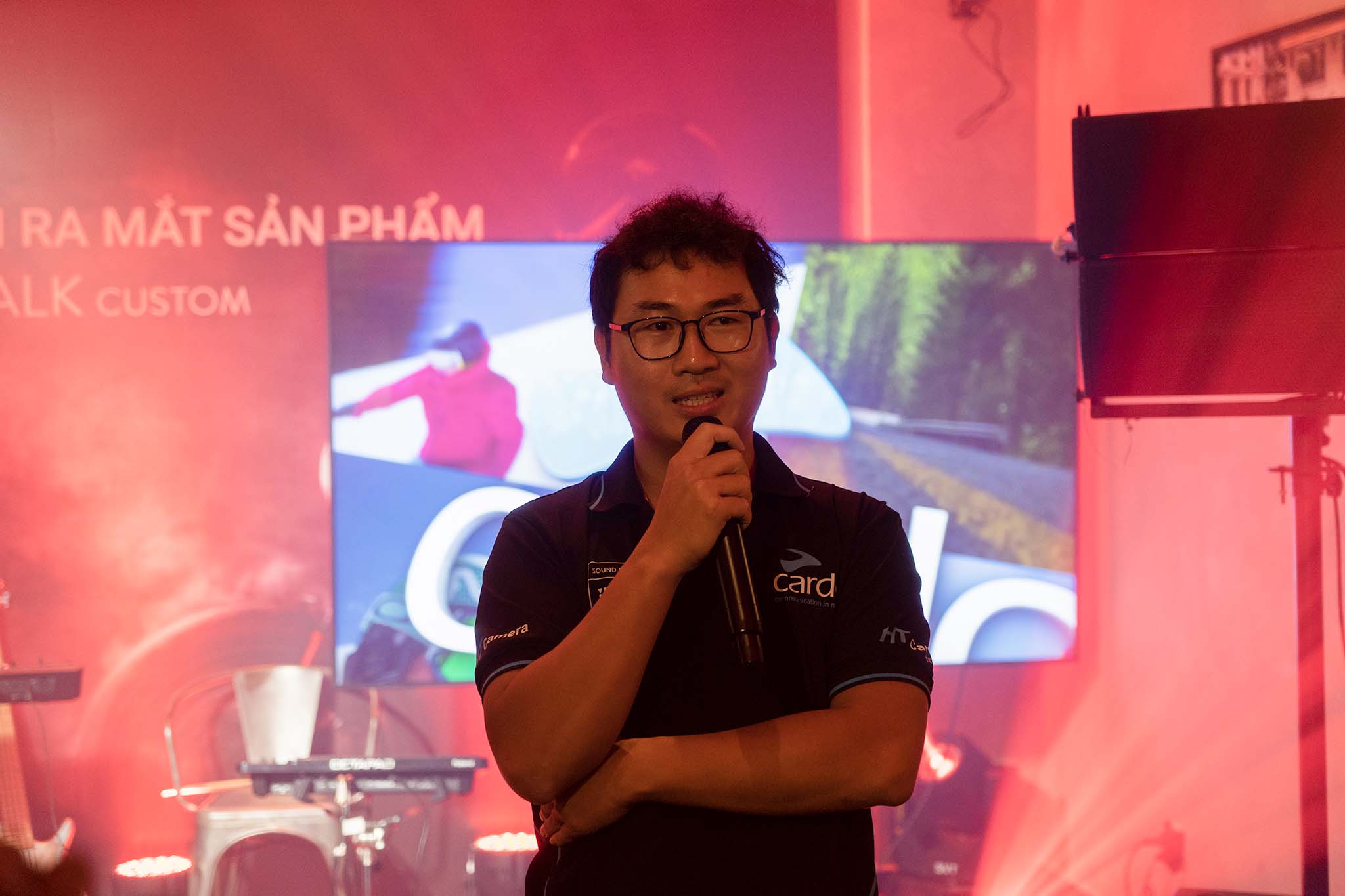 Đại diện Cardo khu vực Đông Nam Á chia sẻ với giới truyền thông về sản phẩm PACKTALK CUSTOM mới.