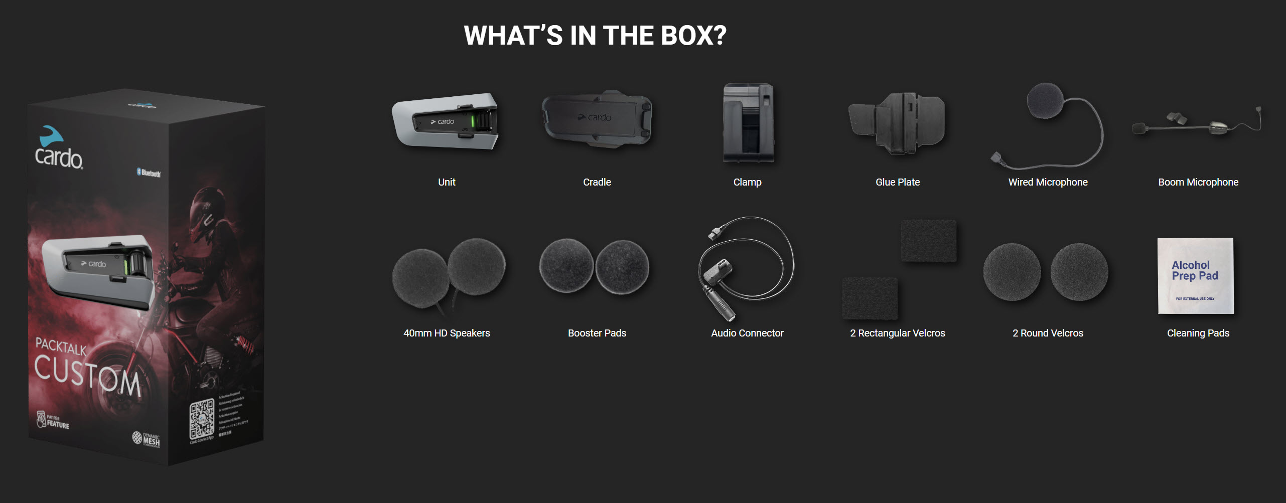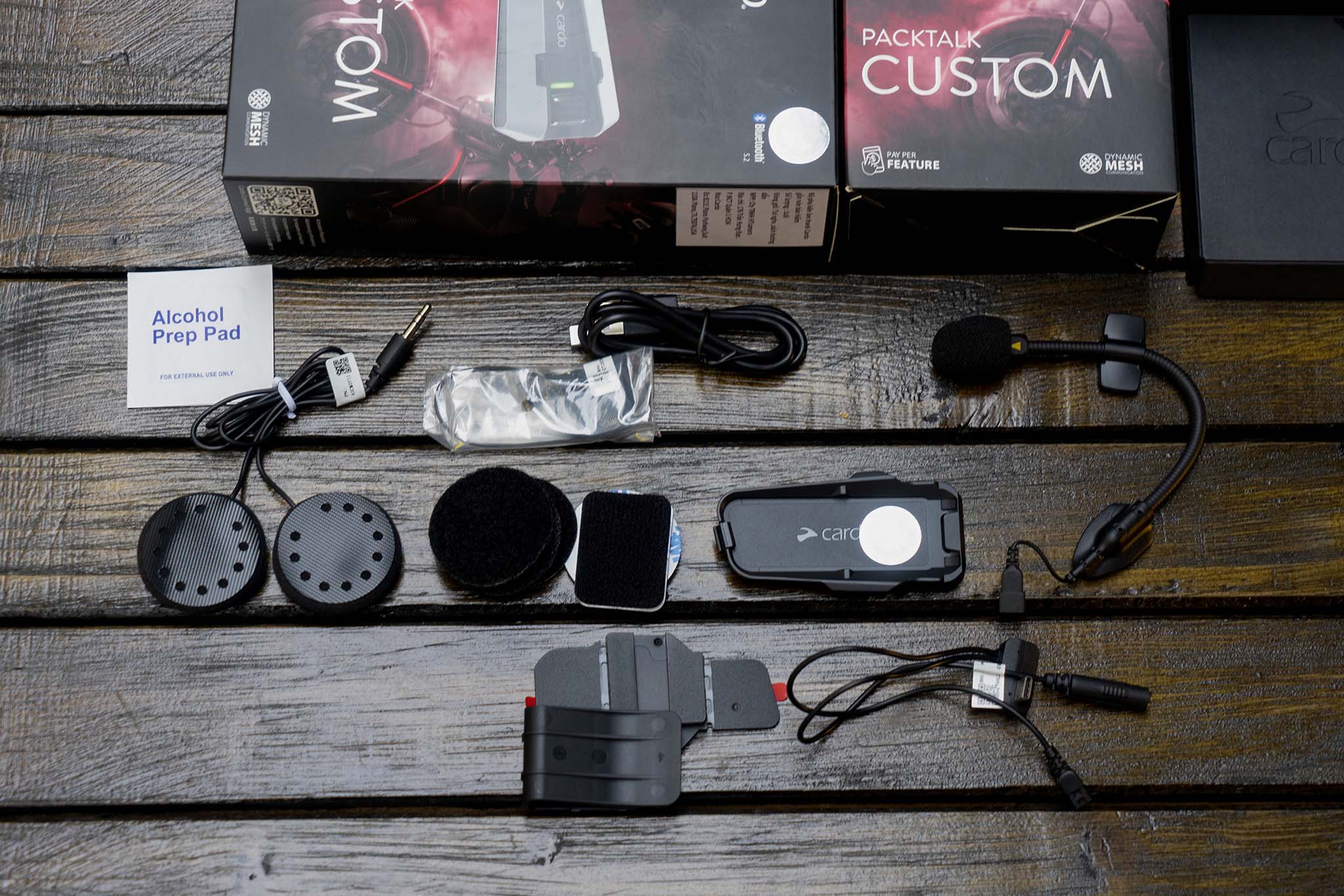 Tất cả phụ kiện bên trong tai nghe PACKTALK CUSTOM khi khui hộp.