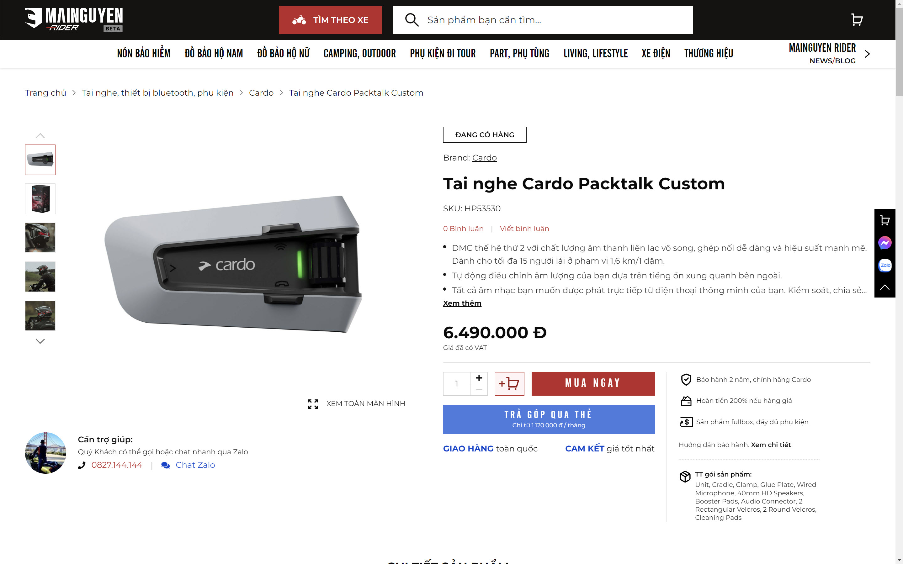 Hiên tại, tai nghe PACKTALK CUSTOM hàng chính hãng đang được bán tại hệ thống Mai Nguyên cũng như Mai Nguyên Rider với mức giá 6.490.000 VNĐ
