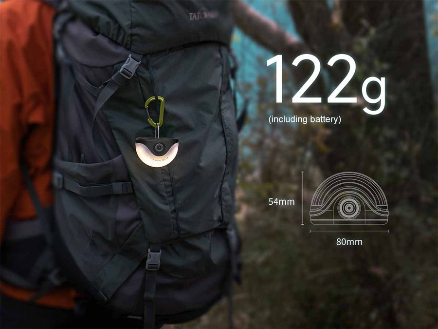 Hầu hết những sản phẩm đèn cắm trại đều có kiểu dáng đèn lồng, dạng ống hoặc dạng thanh, nhưng với thương hiệu Fenix thì lại sáng tạo hơn với mẫu đèn CL20R Pro khi có thiết kế lấy cảm hứng từ vỏ ốc sên vô cùng thú vị. Toàn bộ phần vỏ bằng chất liệu nhựa kỹ thuật chịu va đập tốt, độ hoàn thiện chắc chắn, kích thước nhỏ gọn chỉ tương đương một hộp kẹo và trọng lượng nhẹ chỉ khoảng 122g nên bạn dễ dàng treo trên balo, bỏ trong túi đeo chéo hay thậm chí bỏ trong túi áo để mang theo sử dụng thoải mái. Đèn Cl20R Pro còn cho khả năng chống sốc ở độ cao tối đa khoảng 1.5 mét, kháng nước kháng bụi đạt chuẩn IP65.