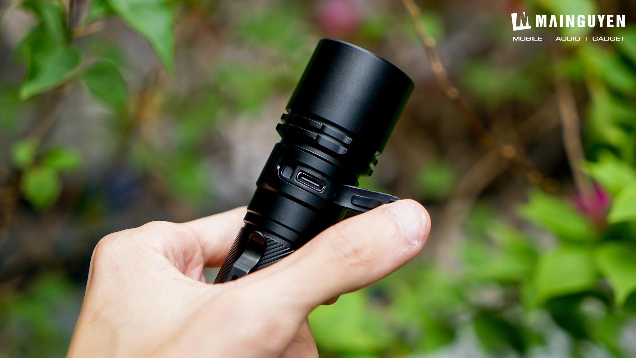 Đèn pin cầm tay Fenix C5 V2.0 được trang bị cổng sạc USB-C có hỗ trợ sạc nhanh và được che đậy kín bằng nắp silicon.