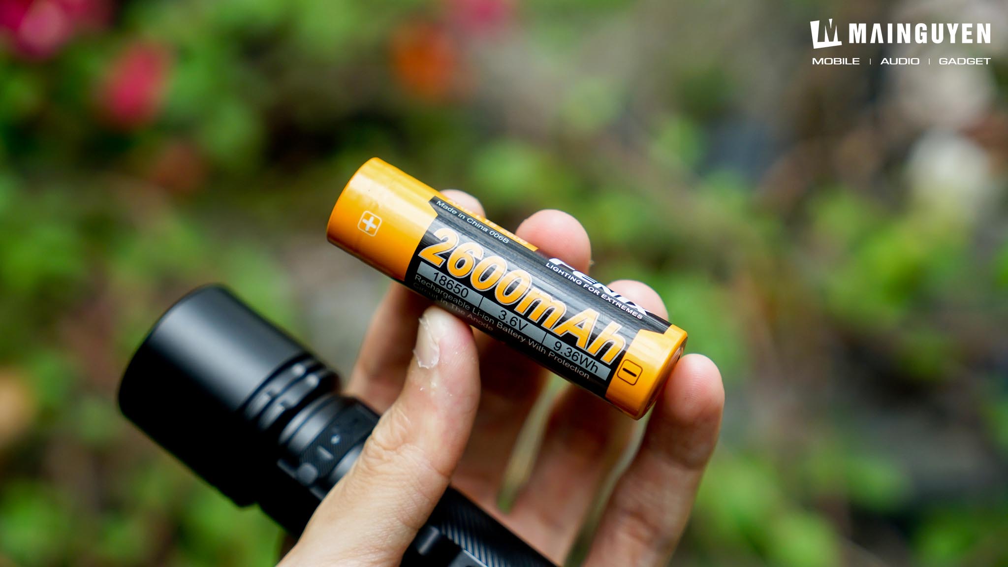 Đèn pin cầm tay Fenix C5 V2.0 đi kèm sẵn 1 viên pin sạc Li-ion tên mã ARB-L18-2600 có dung lượng 2.600mAh. Điểm đặc biệt so với những viên pin AA thông thường bạn dễ tìm mua ở bất kì đâu đó là cách Fenix hoàn thiện loại viên pin AA này. Đầu tiên, viên pin ARB-L18-2600 giữ được chất lượng khoảng 75% so với ban đầu sau khoảng 500 lần chu kì sạc-xả, khi dùng cường độ cao thì tuổi thọ viên pin có thê từ 1 - 2 năm, nếu dùng ít hơn thì tuổi thọ có thể kéo dài đến 5 - 7 năm. Tiếp đến, viên pin ARB-L18-2600 có một mạch bảo vệ ngay đầu cực dương, cùng một tấm thép siêu bền chống biến dạng để tránh những va đập có thể gây đoản mạch. Cuối cùng, viên pin ARB-L18-2600 có thiết kế van cân bằng áp suất để giải phóng khí gas có thể sinh ra trong khi viên pin hoạt động. Van này giúp giảm áp lực, ngăn pin bị quá tải khi hoạt động, chống cháy nổ.