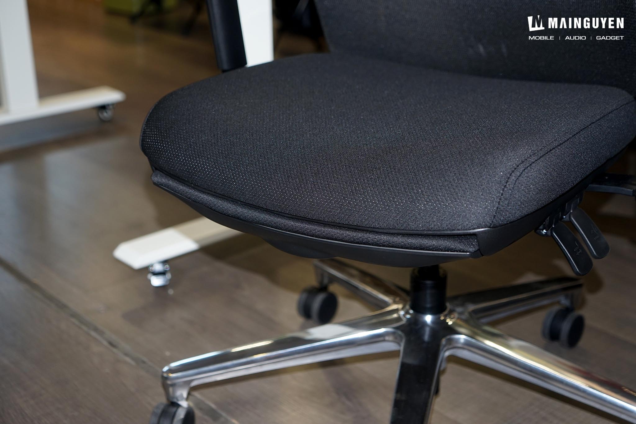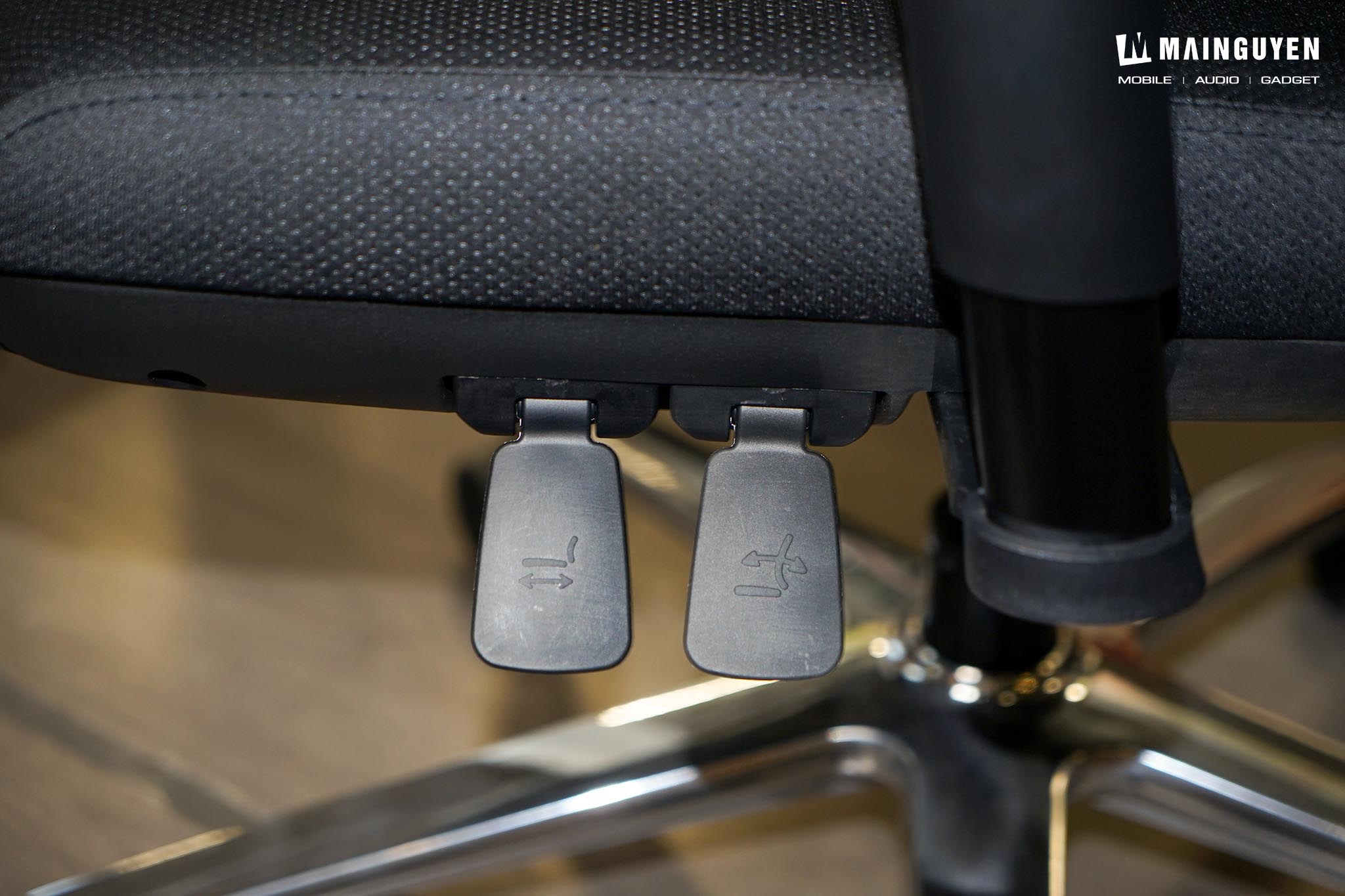 Bạn có thể điều chỉnh độ sâu của đệm ngồi (phạm vi khoảng 55mm) để đảm bảo có một khoảng cách vừa đủ giữa mép ghế và mặt sau đầu gối (thường là 2-3 ngón tay), giúp tăng cường tuần hoàn máu ở chân và đùi.