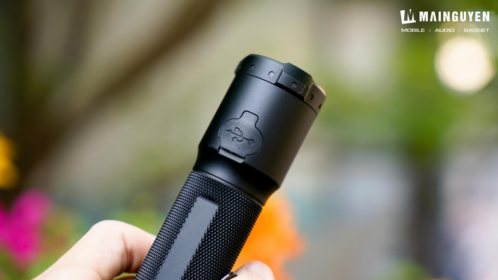 Về thời gian sử dụng, đèn pin TAC7R được trang bị sẵn 1 viên pin 21700 dung lượng 4.600mAh 3.6V giúp đèn có dung lượng lớn, duy trì dòng xả cao ổn định hơn khi ở độ sáng cao nhất, và mất khoảng hơn 2 tiếng để sạc đầy qua cổng USB-C