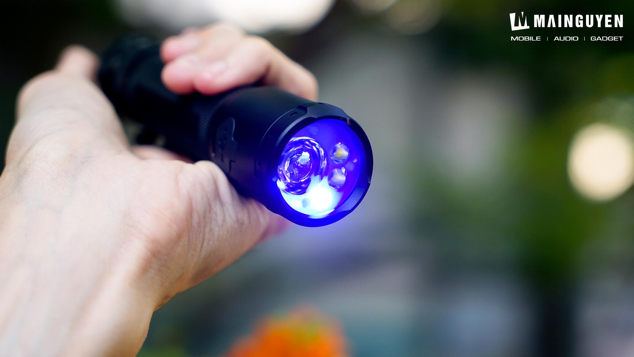 + Blue Light (Ánh sáng Xanh dương): Giúp làm nổi bật các loại chất lỏng (như máu, mồ hôi hoặc vết dầu) trên bề mặt tối, cực kỳ hữu ích cho lực lượng điều tra hiện trường.