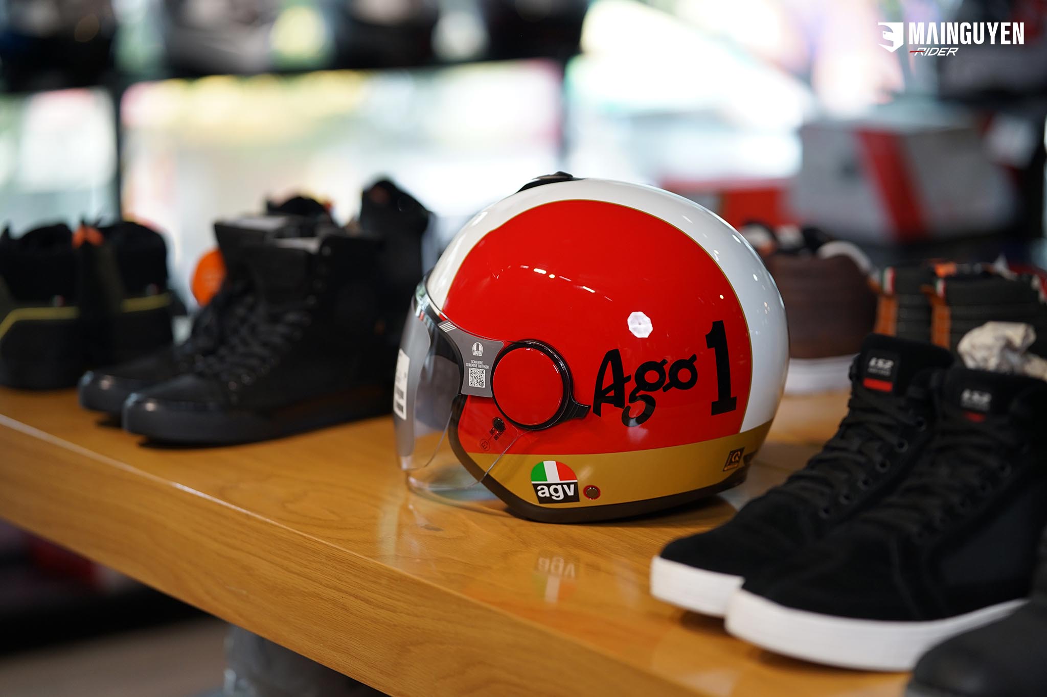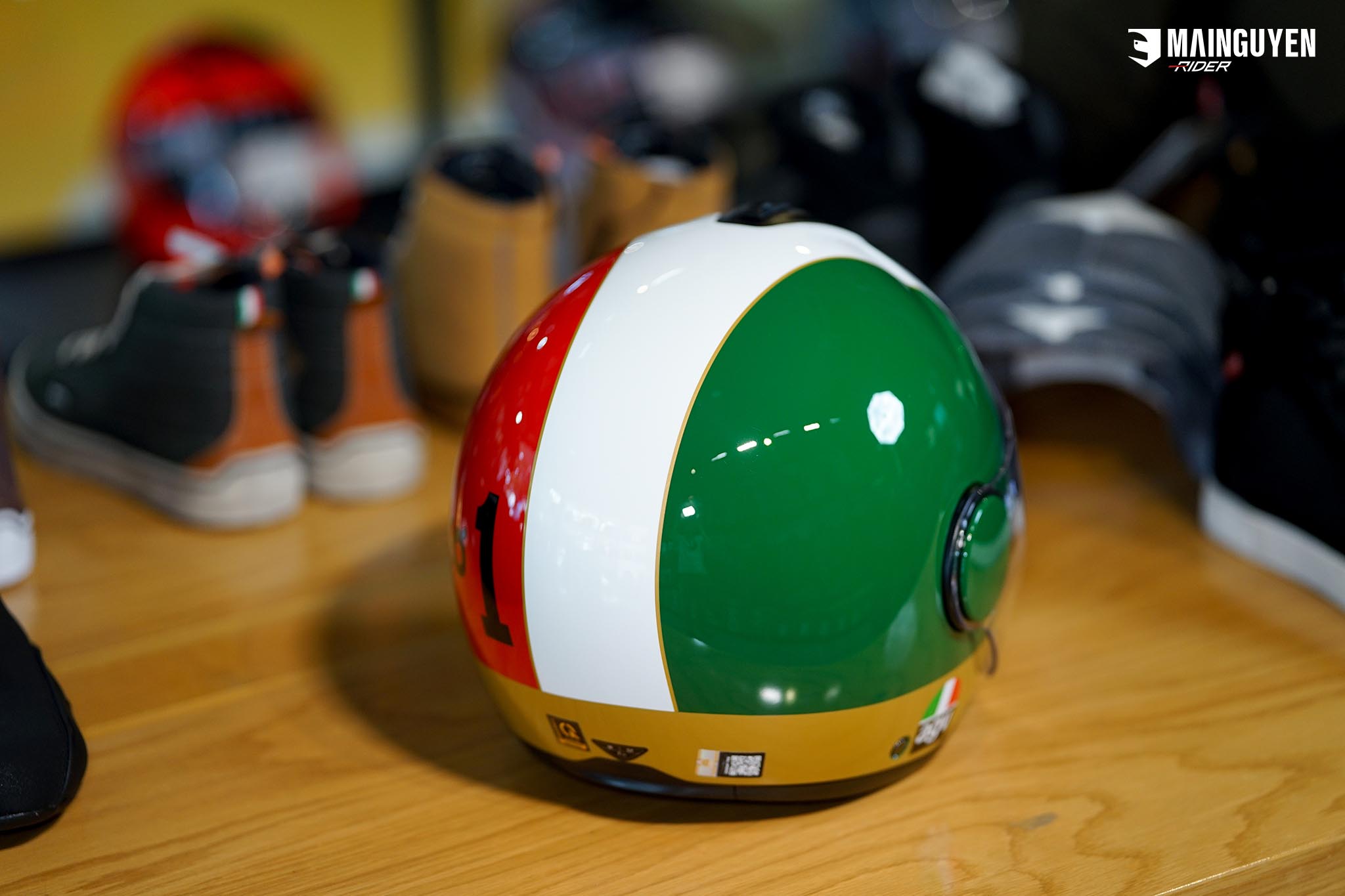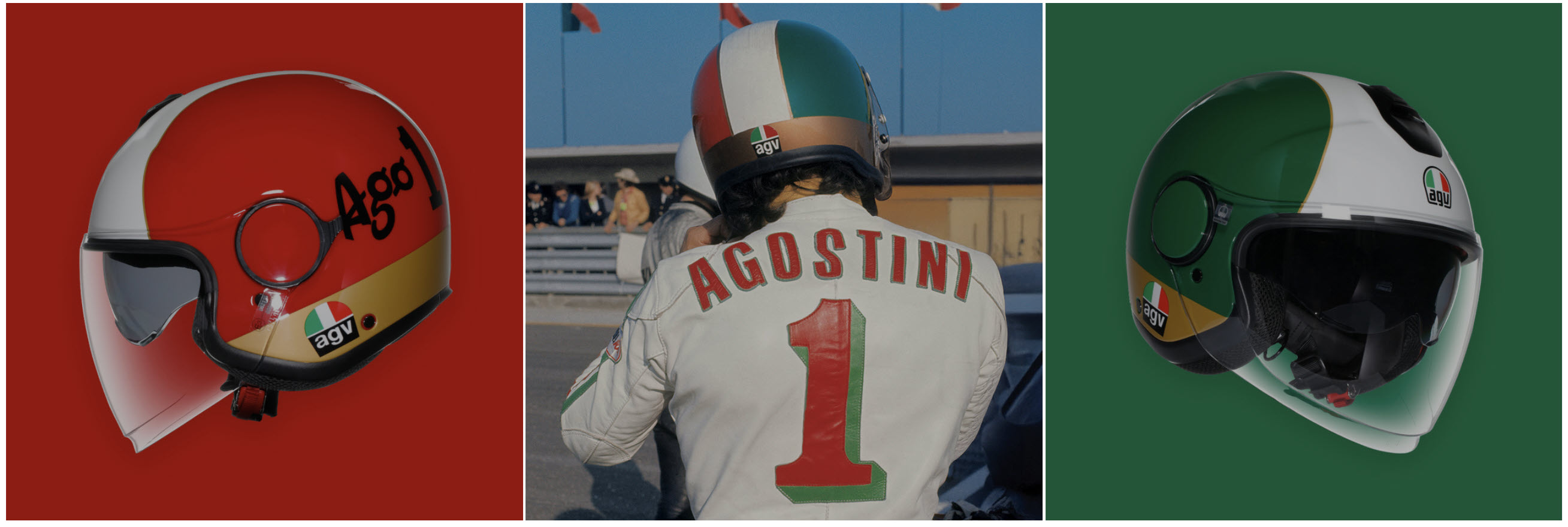Những họa tiết trên Eteres AGO 1 chính là nguồn cảm hứng cho logo gốc của AGV – biểu tượng tricolore nhìn từ phía sau, giống như cách mà đối thủ của Agostini thường chứng kiến khi đua. Ngày nay, chiếc mũ bảo hiểm này tái hiện lại phong cách không thể nhầm lẫn của Agostini, mang đến cho bạn cơ hội khoác lên mình một phần lịch sử đích thực của đua xe máy.