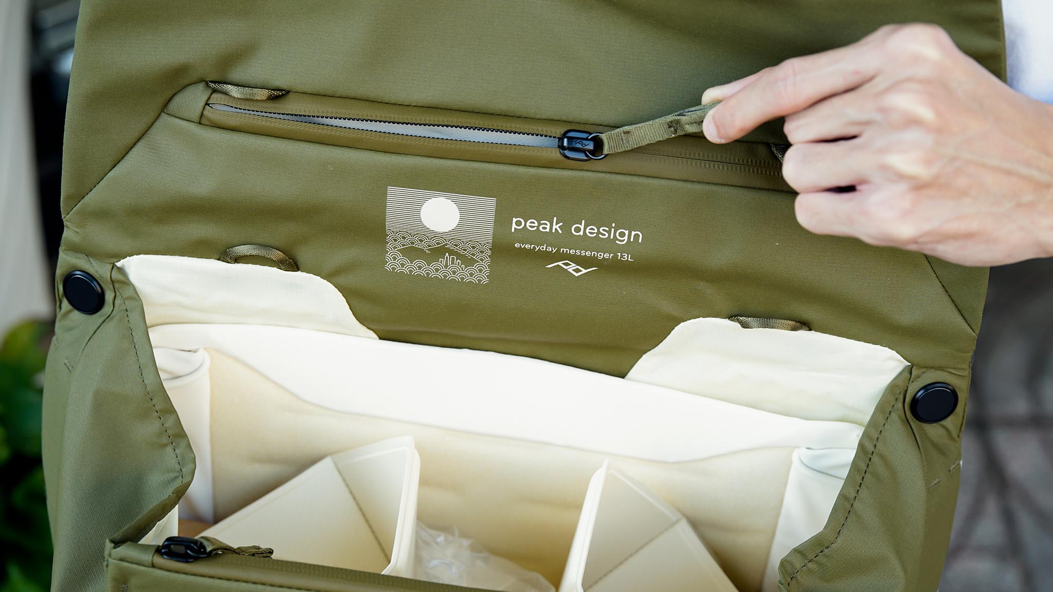 Bên trong túi được trang bị tấm vách ngăn FlexFold đặc trưng của Peak Design, lấy cảm hửng từ nghệ thuật xếp giấy Origami nổi tiếng của Nhật Bản. Bạn có thể gấp vách ngăn để chia tầng (đựng ống kính chồng lên nhau) hoặc tạo ngăn phụ để giữ các phụ kiện nhỏ không bị xê dịch. Khonga chứa có thể chứa dư sức 1 Body Sony kèm ống kính 24-70mm và vẫn còn chỗ cho một chiếc drone nhỏ hoặc máy ghi âm. Ngoài ra, còn có ngăn để đựng vừa một chiếc laptop kích thước 14-inch và ngăn để đựng máy tính bảng hoặc máy đọc sách. Đặc biệt, còn có ngăn nhỏ bên trong để bạn để riêng iPhone hoặc ví tiền rất an toàn.
