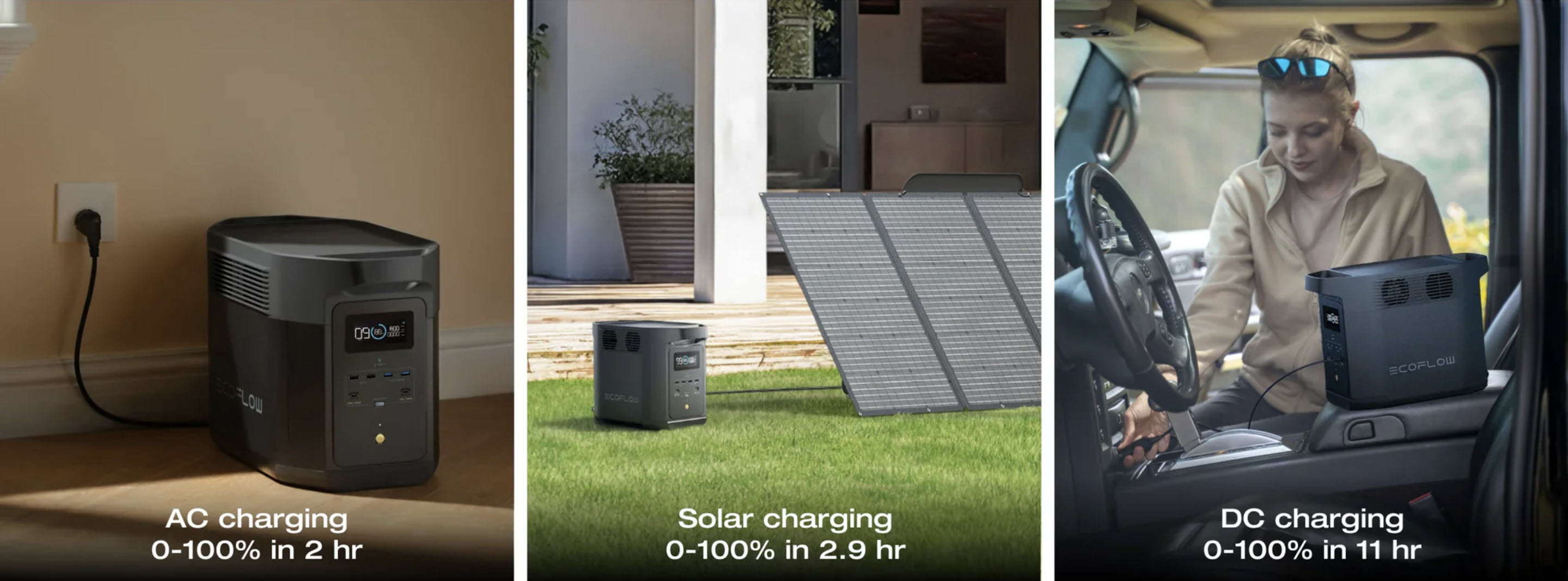 Kết hợp với công nghệ được EcoFlow gọi là X-Stream cho phép sạc đầy trạm năng lượng EcoFlow DELTA 2 Black (E980) từ 0% đến 100% chỉ trong vòng 80 phút, cá nhân mình đã kiểm chứng thực tế thì kết quả đúng như hãng công bố. Việc tiết kiệm được thời gian sạc đầy sẽ giúp cường độ sử dụng được lâu hơn, nhất là khi bạn phải sử dụng thiết bị công suất lớn làm hao hụt năng lượng pin nhanh hơn. Trong khi phần lớn những mẫu trạm năng lượng khác chỉ cung cấp điện đầu ra lớn chứ không hỗ trợ sạc nhanh đầu vào.