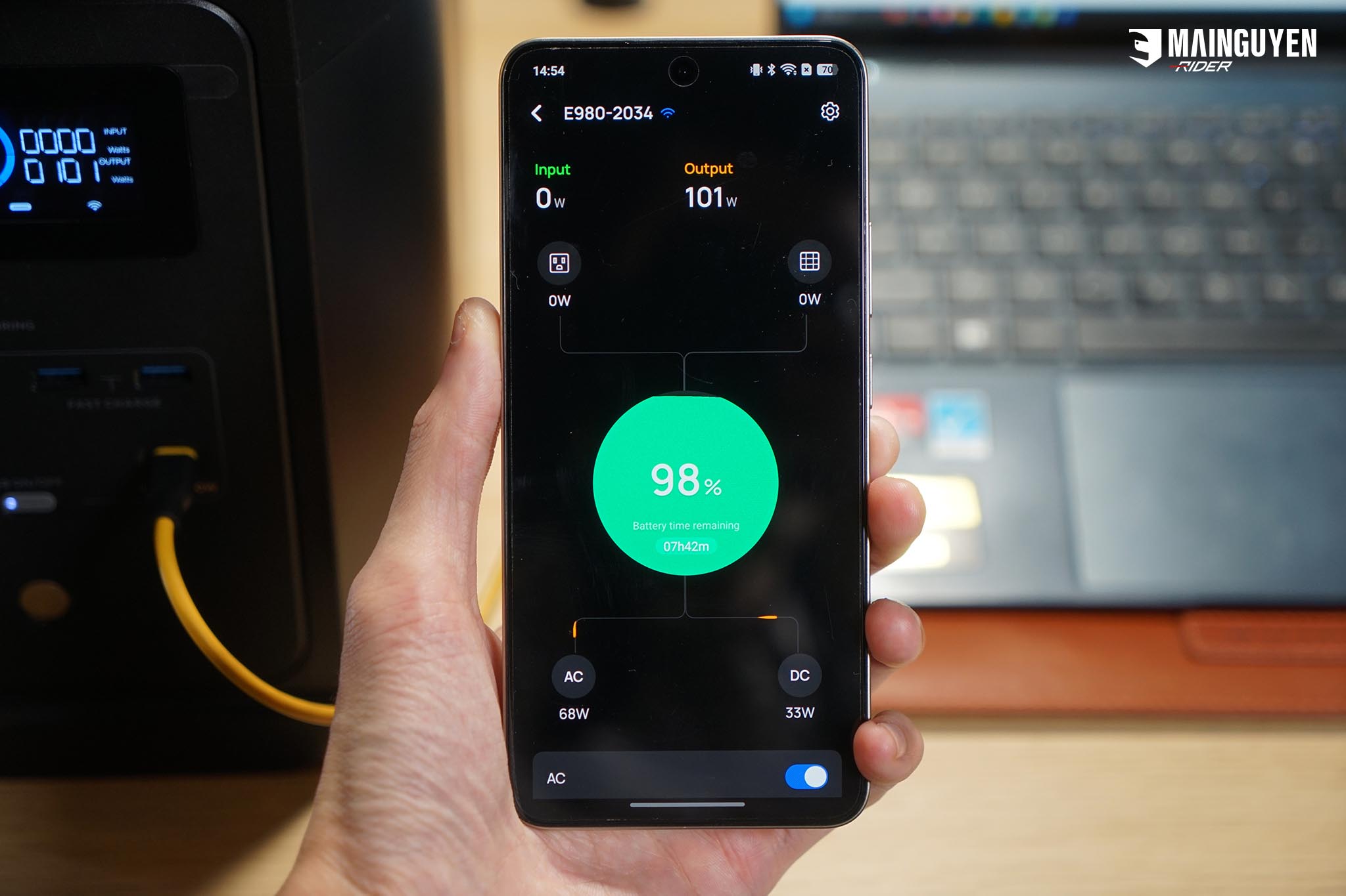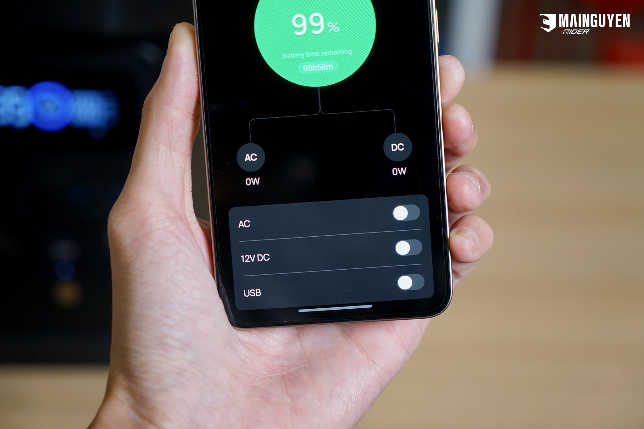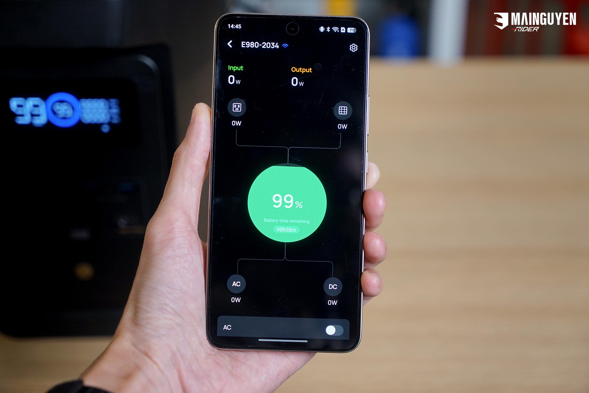 Trạm năng lượng EcoFlow DELTA 2 Black (E980) còn có ứng dụng đi kèm có tên EcoFlow, bên trong giao diện được thiết kế trực quan và dễ dùng. Bạn có thể quản lý được tất cả từ mức dung lượng pin còn lại, mức công suất dòng điện Input/Output, cập nhật phần mềm, giới hạn dòng điện, các thiết bị đang cắm sạc,…